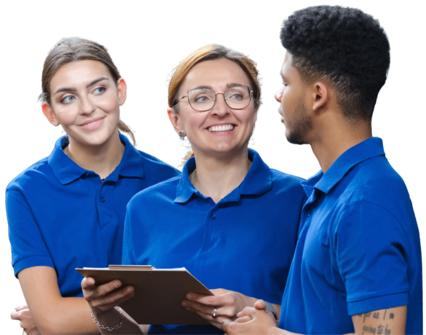 Three team members in conversation, symbolising collaboration, shared values, and the power of trusted referrals in healthcare.
